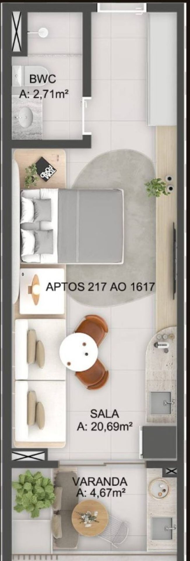 Metragens: Opções de 31m², 39m² e 68m².