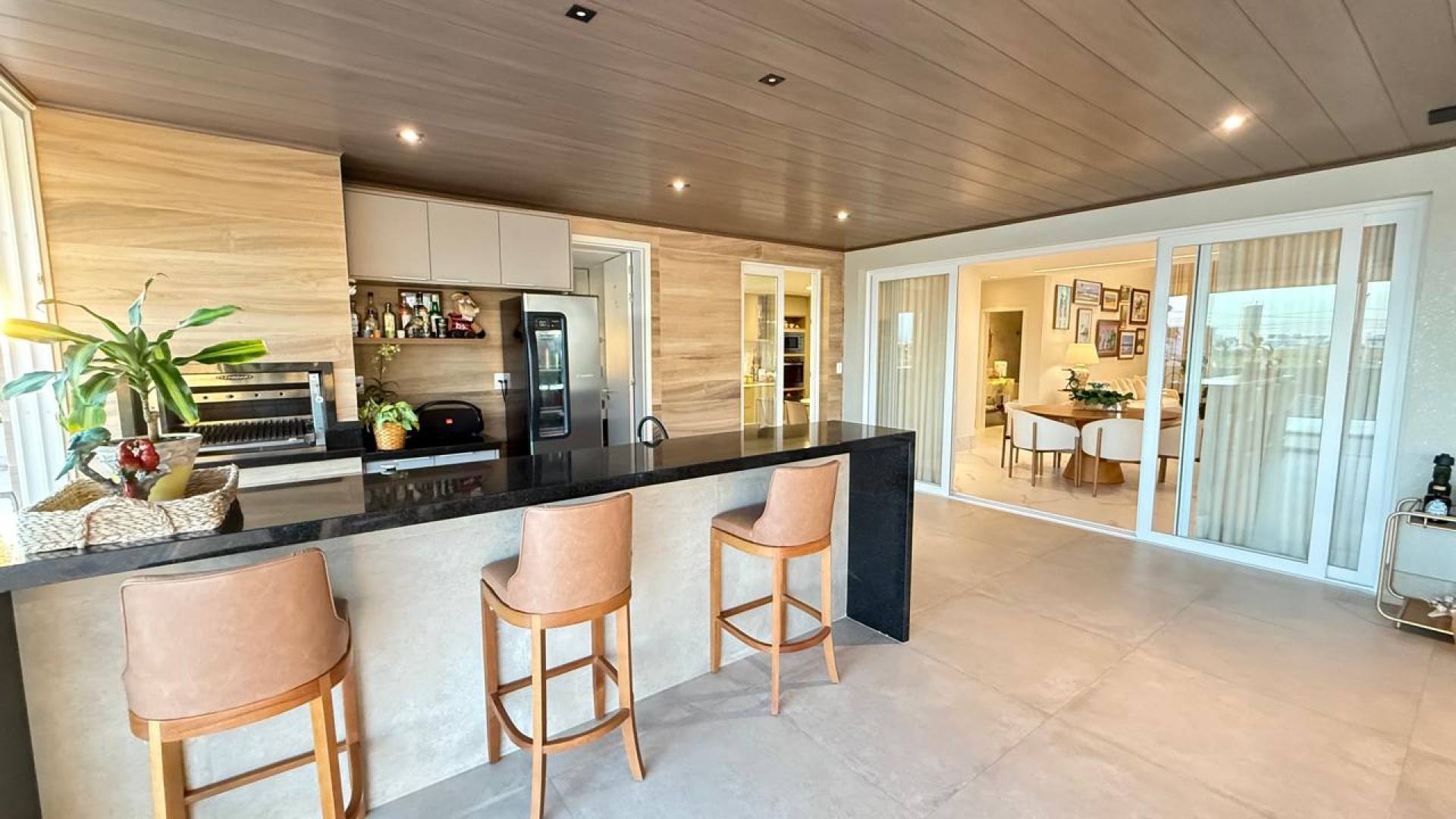 Espaço gourmet amplo com churrasqueira
