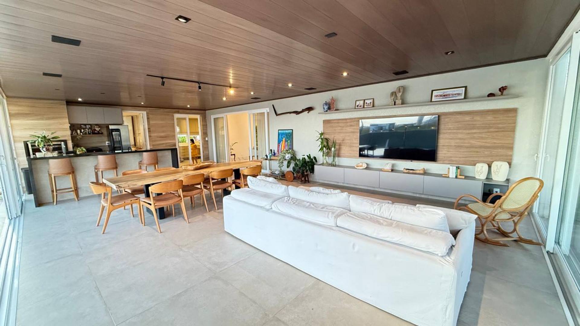 Sala de estar ampla e integrada à sala de jantar