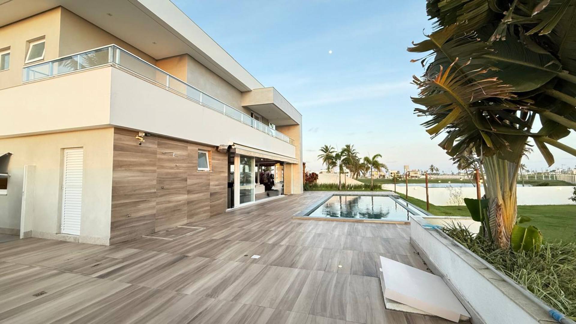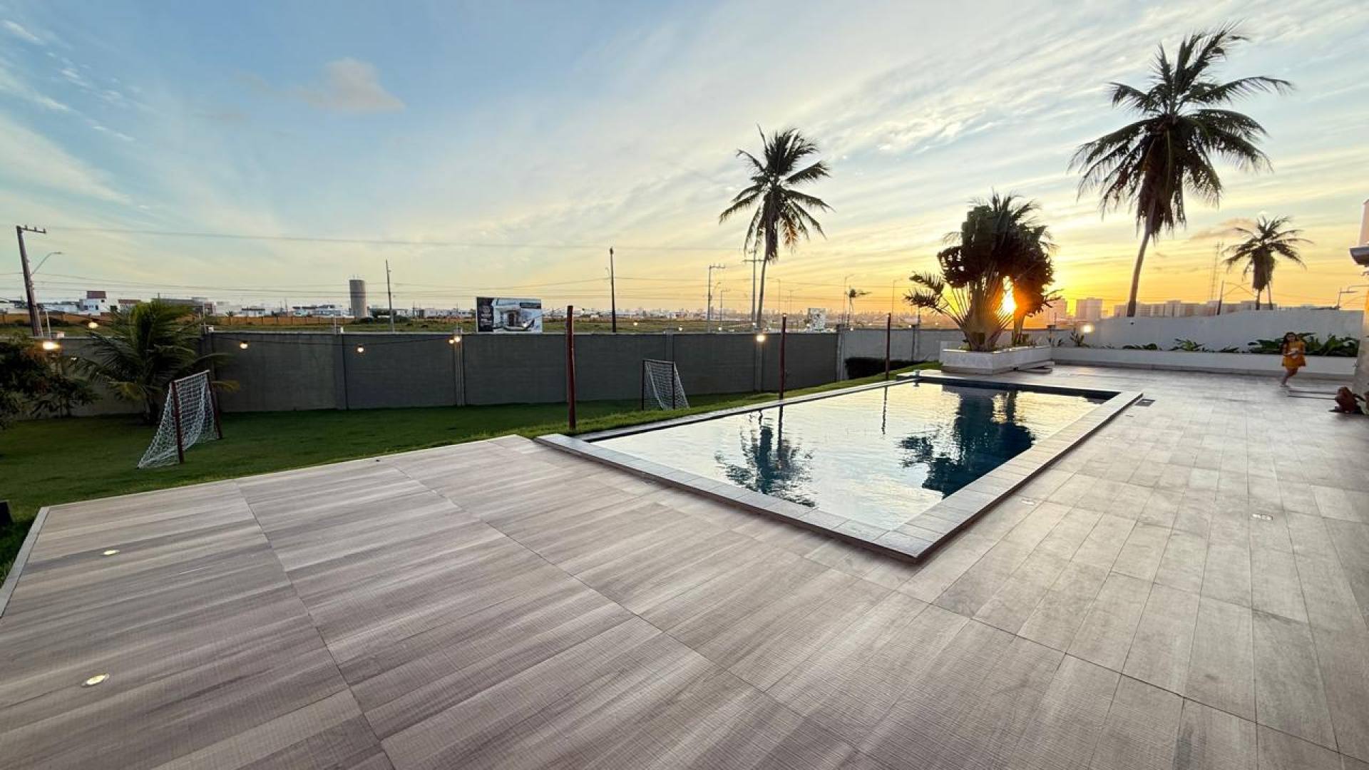 Piscina com 44 m², borda infinita e vista deslumbrante para o pôr do sol