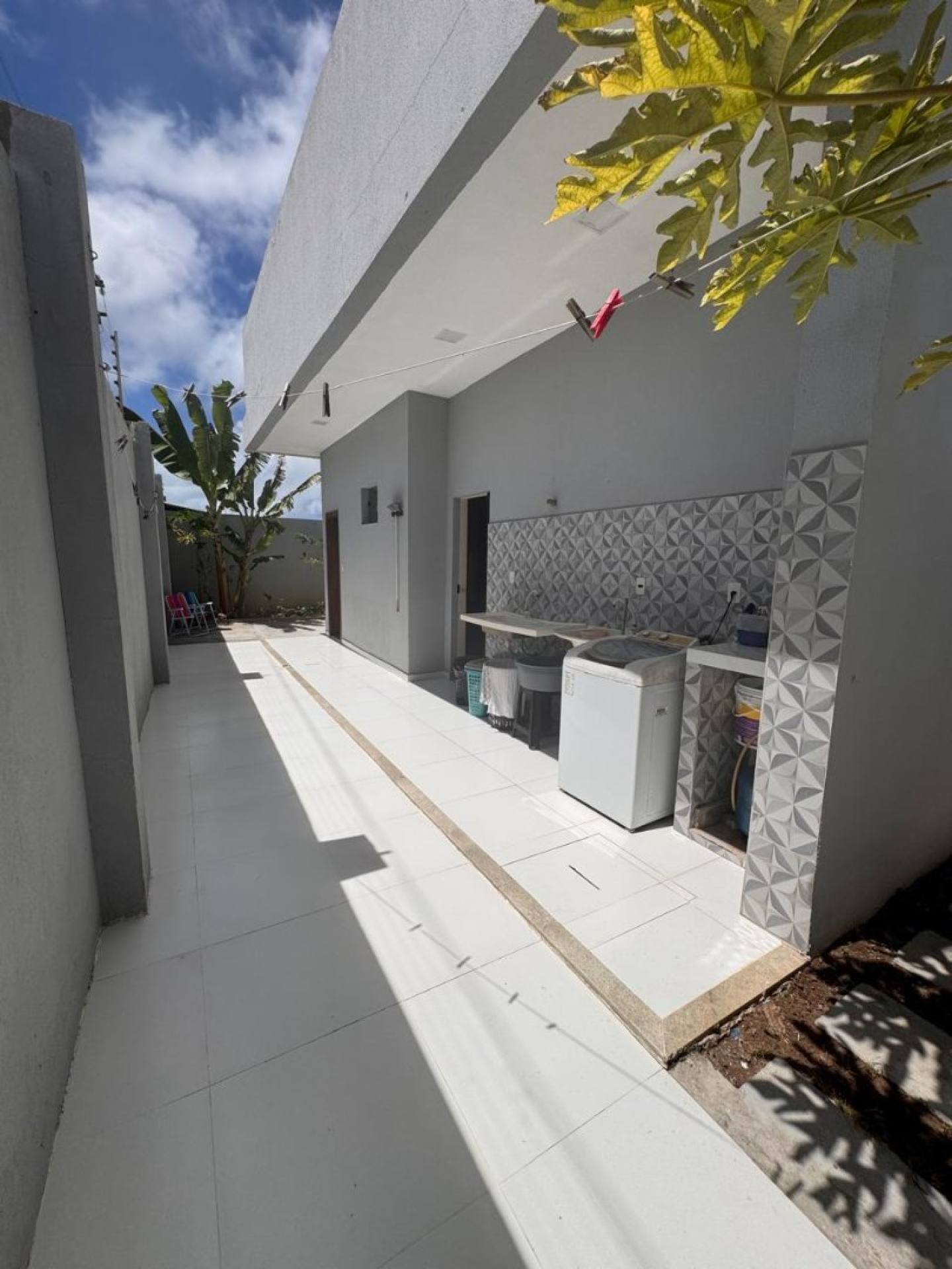 Casa recém-construída com pé direito alto, sala ampla, cozinha integrada, área de serviço, corredor lateral (casa solta), chuveirão e poço artesiano. Quintal amplo e terreno sobrando na frente e lateral para futuras ampliações.